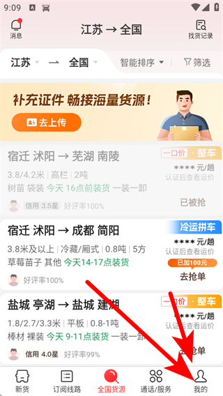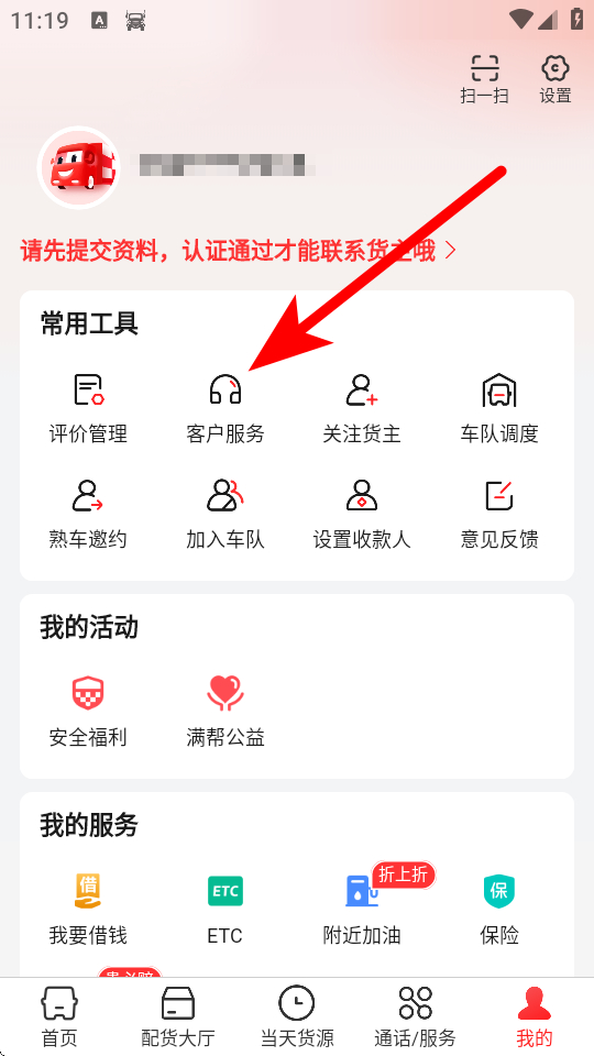 1、打开运满满,点击底部我的,进入个人功能操作页面。