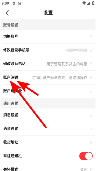 3、在设置的页面,我们需要点击账户注销,进入账户注销页面。