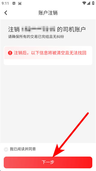 4、在账户注销页面,点击下一步,按照后续提示完成账户注销操作。