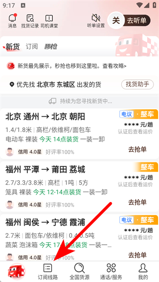1、打开运满满司机APP,点击底部订阅线路,进入订阅线路页面。
