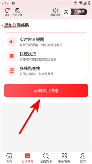 2、在订阅线路页面,点击添加常用线路,进入线路添加设置界面。