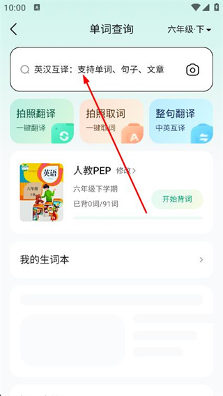 2、在单词查询页面,找到并点击顶部的搜索框。