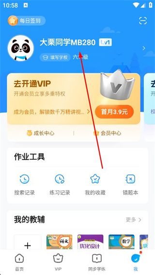 1、打开作业帮APP,点击底部导航栏我的选项。