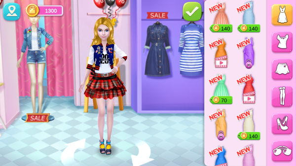 1、真实购物模拟:完整还原试衣、付款等购物流程,体验逛街的乐趣。