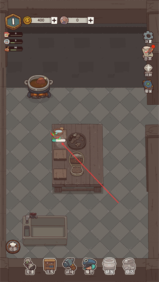 1、在店铺界面点击道具如食材,将其移动到操作区域。