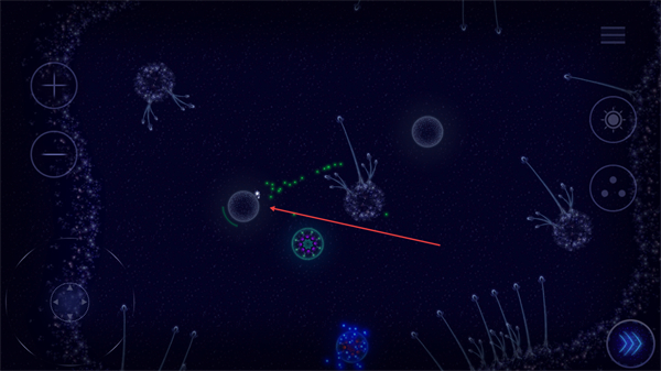 3、移动细胞靠近空泡,吸收资源提升自身状态,增强生存能力。