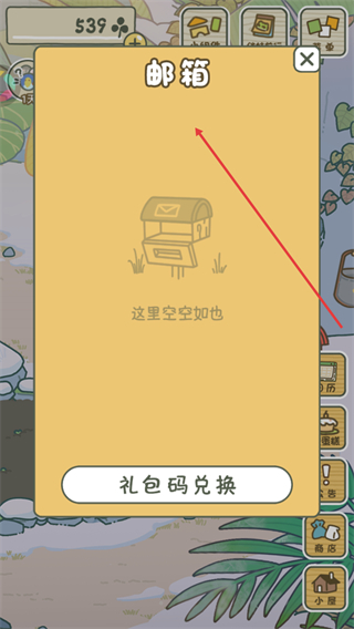 4、通过邮箱可查看青蛙旅行带回的消息,也能兑换礼包码获取奖励。