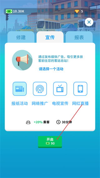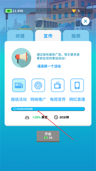 3、等待宣传活动完成,获取客流加成的效果。