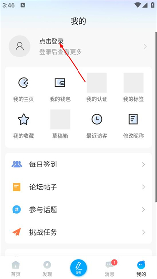 2、在个人页面,点击点击登录区域,进入账号密码登录页面。