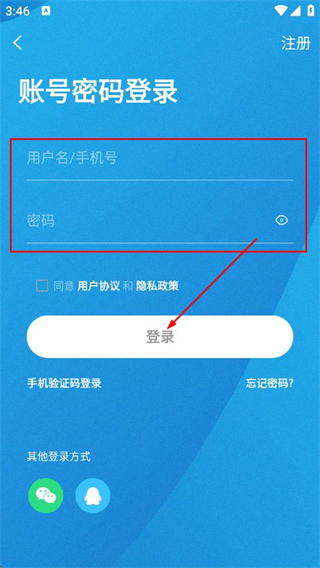 3、在账号密码登录页面,填写手机号和密码,点击登录,完成登录操作。