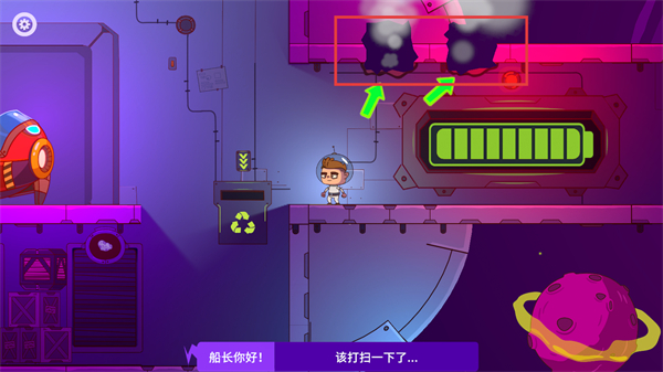 3、按照【绿色箭头】指向,修复船舱,完成场景清理任务,为后续行动铺路。