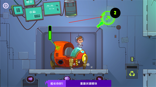4、根据提示【重建关键模块】,操控角色靠近载具,按【绿色箭头】指示的交互区域完成模块重建。