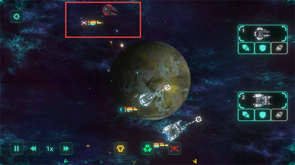 5、可以从屏幕右侧的功能面板中,随时启用或禁用特定飞船的武器、防御系统及推进器,实现精细操控。