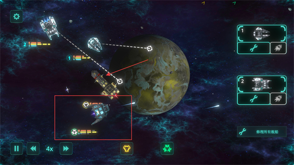 3、操作简洁直观,点击即可选择己方飞船,双击地图任意位置便能指挥该飞船移动至目标地点。