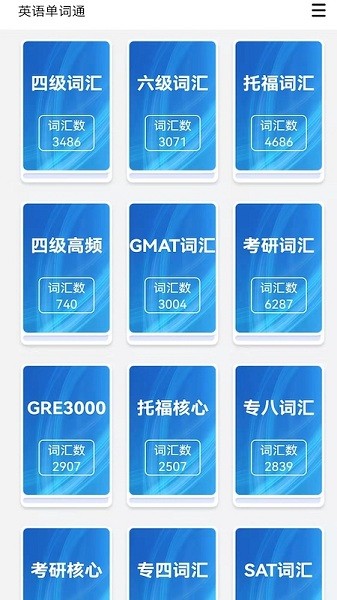 提供四级,六级,GRE,SAT,托福,雅思,考研,专四,专八,GMAT等核心及高频单词词库,涵盖了各类英语单词考试,可任性选择,专项复习;