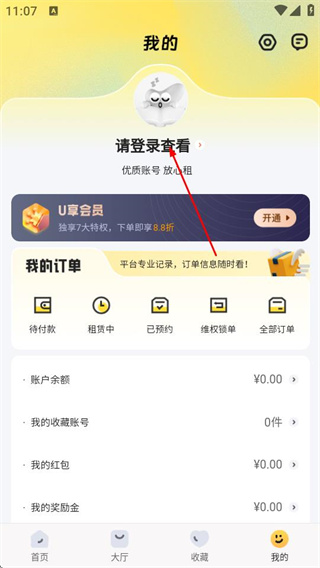 2、在个人中心页面,点击请登录查看区域,可进入登录页面。
