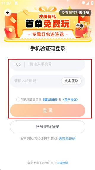3、在登录页面,填写信息并勾选协议后,点击登录按钮即可完成账号登录。