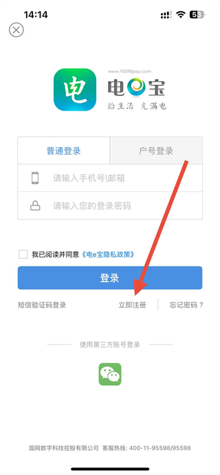 1、打开电e宝APP后,在首页点击立即登录按钮,进入登录页面。