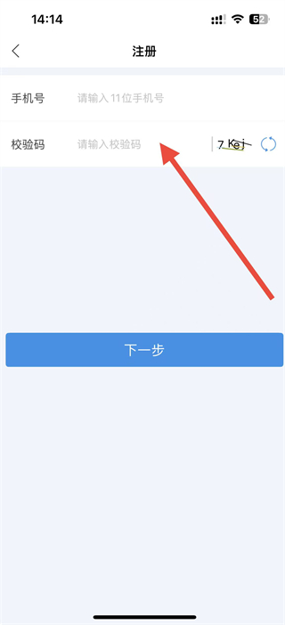 3、在注册界面输入手机号,填写页面显示的图形校验码,点击下一步获取短信验证码。