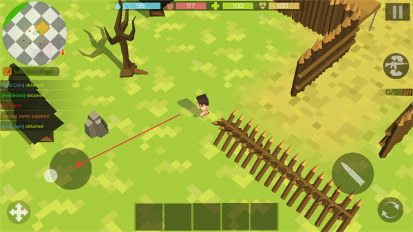 4、持续攻击生物,击败后获取生存物资,推进生存进度。