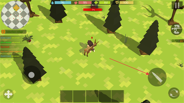 2、靠近野外生物如鹿,准备发起攻击获取物资。