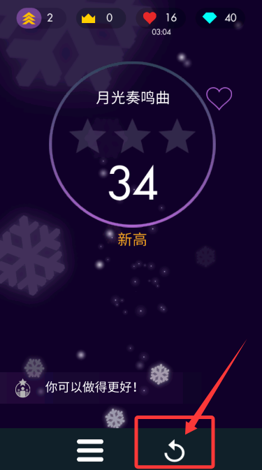 4、曲目结束后查阅成绩单,可通过"再次演奏"选项重新挑战提升表现。