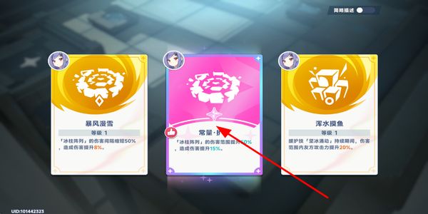 4、战斗后选择对应的增幅卡牌,获取技能相关的属性加成,强化自身战斗能力,为冒险战斗做准备。