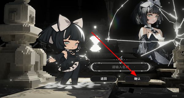 1、在输入名称的界面填写角色名字,点击确认按钮完成角色创建,进入游戏场景开启后续探索。