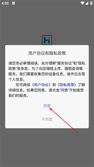 1、阅读用户协议和隐私政策后,点击弹窗中的同意按钮。