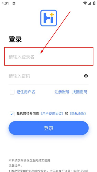 2、在登录页,填写请输入登录名,即可进行下一步的操作。
