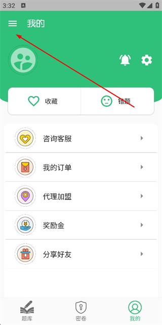 2、在个人中心页面点击左上角的菜单按钮,展开功能侧边栏。