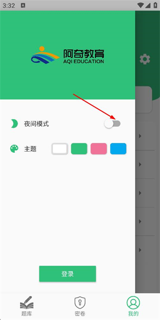 3、在侧边栏的设置界面中,点击夜间模式的开关按钮,切换模式状态。