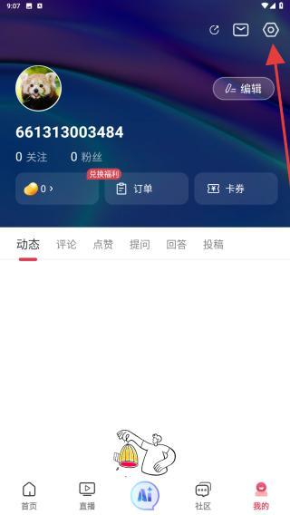2、进入我的页面,找到并点击设置的图标,通常为齿轮样式。