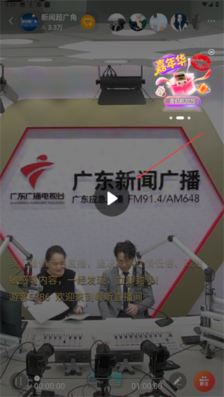 1、启动广东广播电视台APP,进入首页点击下方直播的图标。