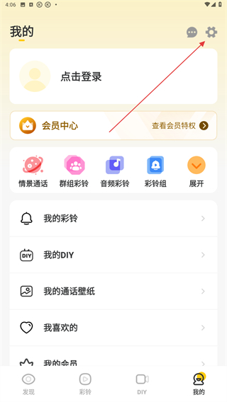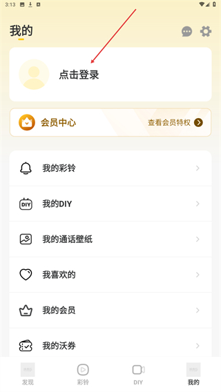 2、在我的页面内,点击上方点击登录的区域位置。