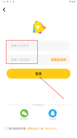 3、输入手机号、验证码后,再点击登录的按钮即可。