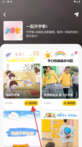 3、进入到一起开学季的页面内,选择并点击做同款的按钮。