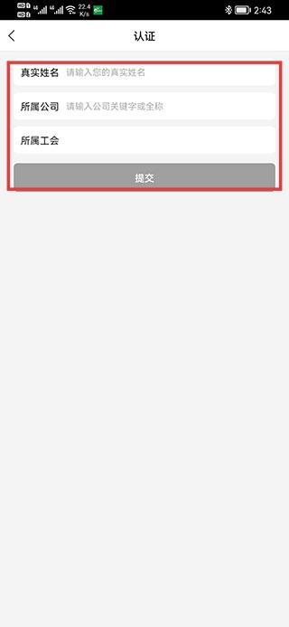 3、进入认证页面,填写真实姓名、所属公司等信息后点击提交。