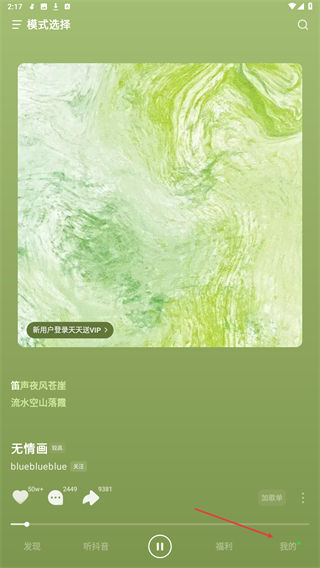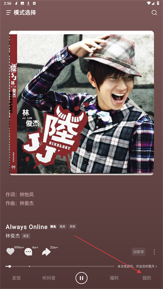 1、打开抖音音乐,点击底部导航栏的我的按钮,进入个人中心页面。