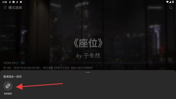 4、滑动后,在邀请朋友一起听的下方,点击复制链接的功能按钮即可邀请朋友一同同步听歌。