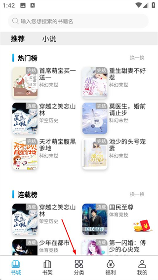 2、在分类页面选择女频标签,切换到女频分类列表。