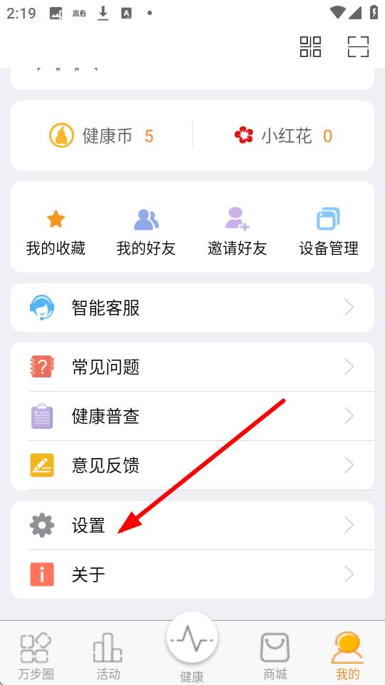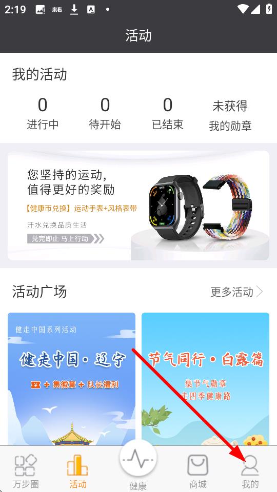 1、打开万步健康App,点击底部导航栏中的我的选项,进入个人页面。