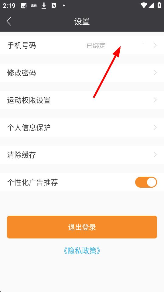 3、在设置界面里,点击手机号码选项,进入当前手机号页面。