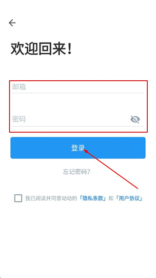 3、在登录页,填写邮箱和密码,点击登录,完成账号登录操作。