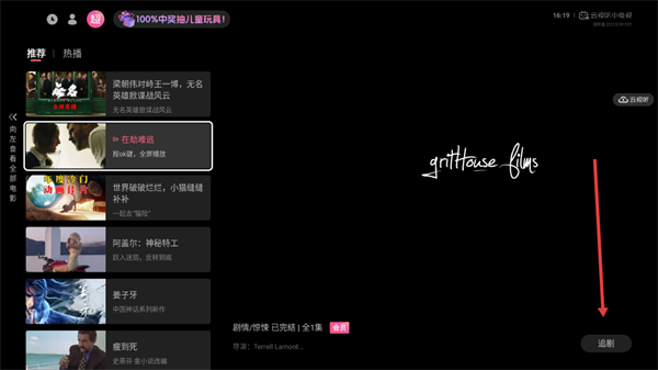 3、进入该电影播放的页面,再次点击右下方追剧的按钮即可。