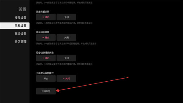 4、在隐私设置的界面内,向下滑动找到并点击注销账号即可。