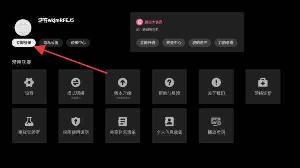 2、目前显示游客的登录状态,需点击立即登录即可跳转至该页面。