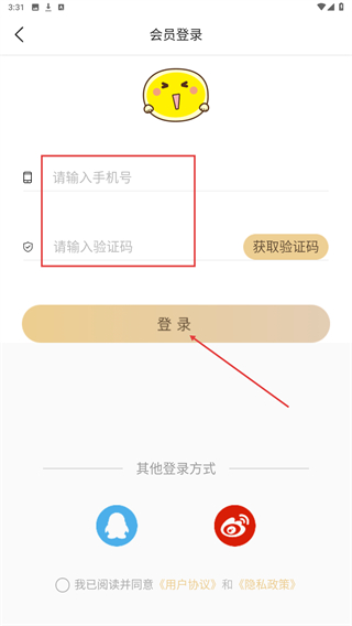 3、进入登录的界面内,输入手机号、验证码再点击登录即可完成。