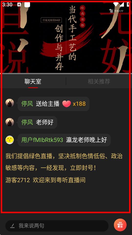 4、进入直播播放页面后,即可观看直播内容,还能在下方聊天室与其他观众互动交流。