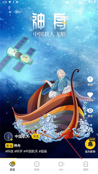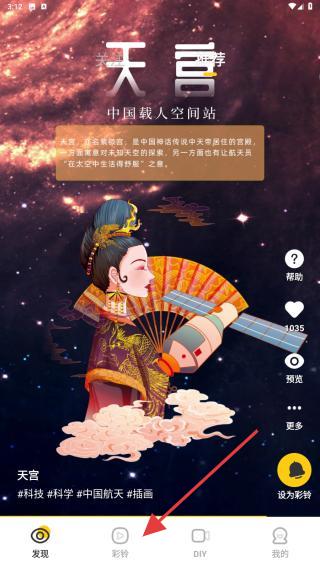 3、点击后,会呈现效果预览,点击右侧设置彩铃的功能按钮。